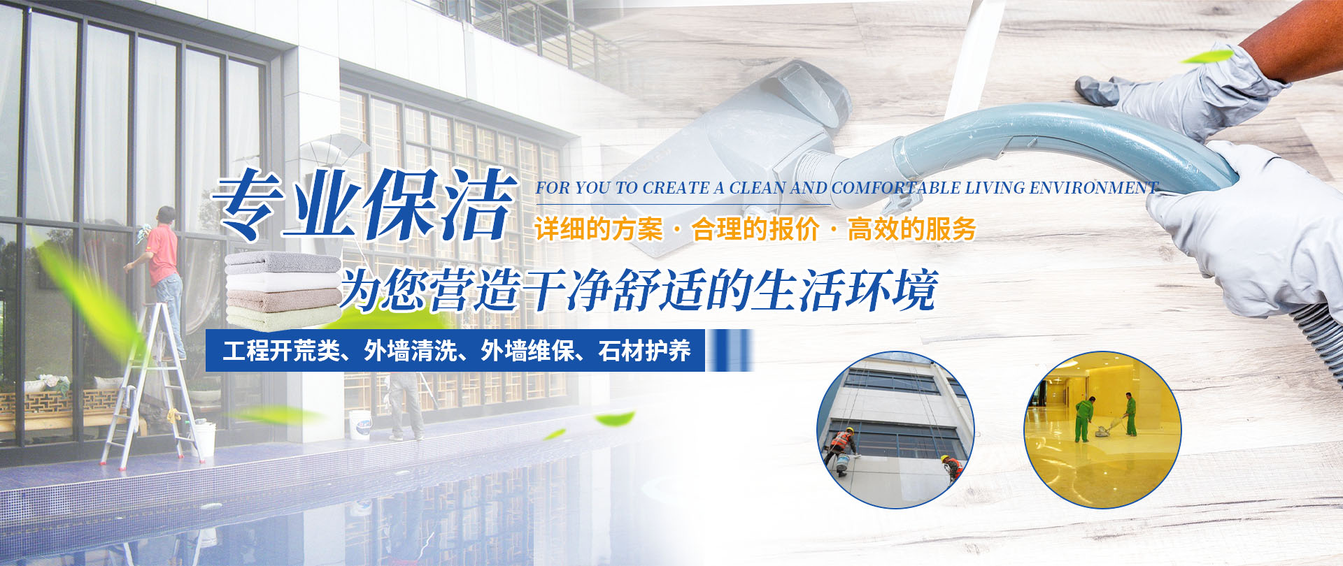 四川梓淇清潔服務(wù)有限公司,是一家從事物業(yè)管理,外墻清洗,外墻維保,綜合類(lèi)開(kāi)荒保潔企業(yè)公司。   專(zhuān)業(yè)從事物業(yè)管理、工程開(kāi)荒類(lèi)、外墻清洗、外墻維保、石材護(hù)養(yǎng)服務(wù)。公司有正規(guī)培訓(xùn)、擁有專(zhuān)業(yè)的保潔隊(duì)伍;齊全的清潔設(shè)備;規(guī)范的作業(yè)流程;主動(dòng)的服務(wù)意識(shí)。   秉承“環(huán)保、健康、科技、創(chuàng)新、專(zhuān)業(yè)”的服務(wù)理念,為您提供詳細(xì)的施工方案,合理的報(bào)價(jià),高效的服務(wù),全力為客戶創(chuàng)建一個(gè)綠色環(huán)保、清新的環(huán)境,我們的服務(wù)宗旨是:只要您一個(gè)電話,我們將為您營(yíng)造一個(gè)干凈舒適的生活環(huán)境。
